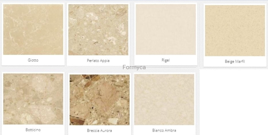 Italienisches Marmorkonglomerat (Agglo Marmor) ist ein industriell hergestellter Stein und besteht zu 95% aus Marmor und zu 5 % aus Polyesterharz, der als Bindemittel für den Naturstein dient.